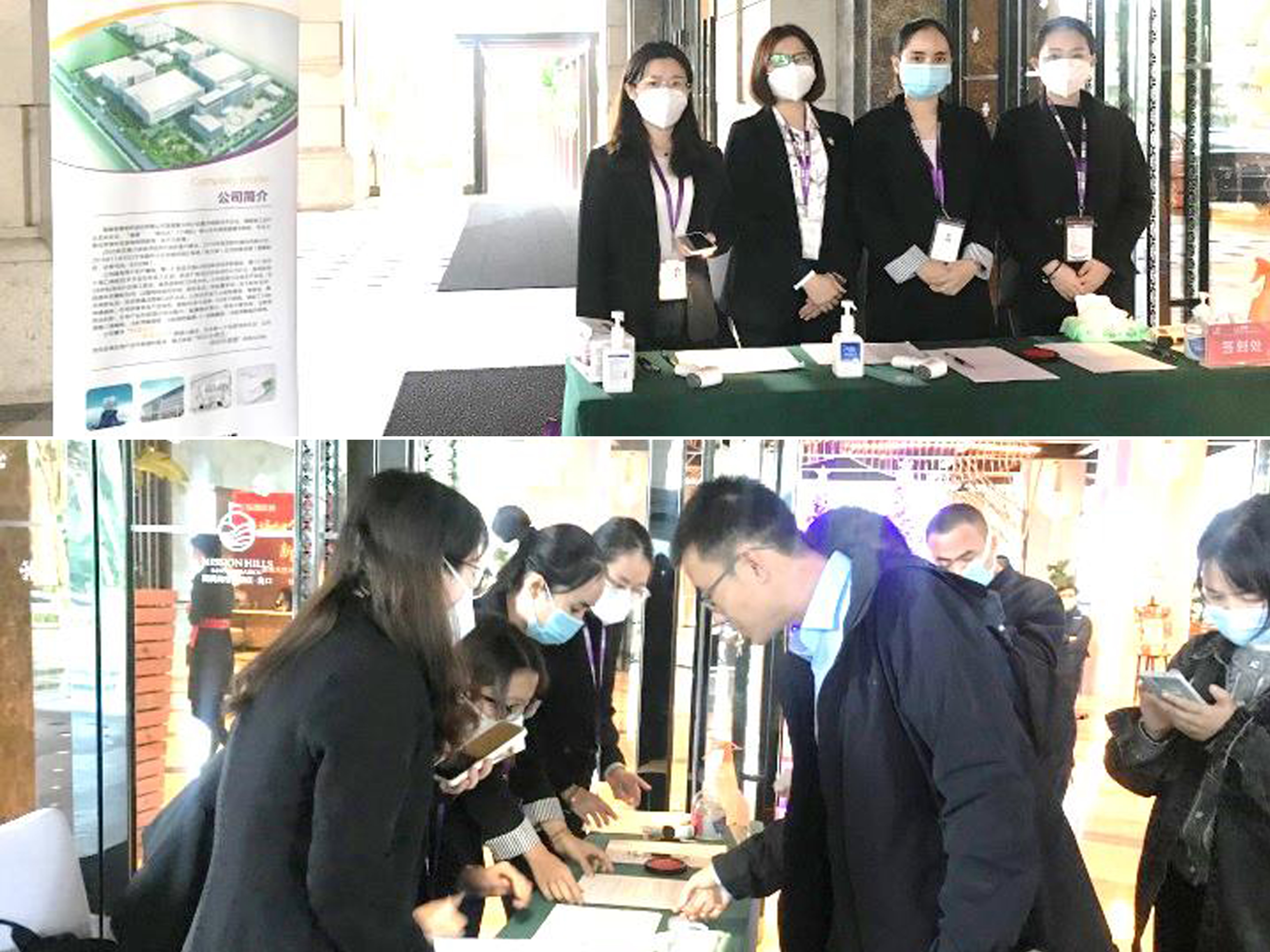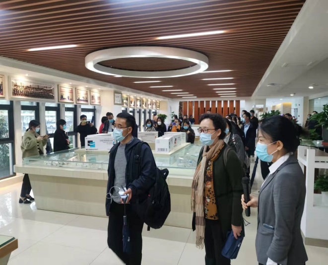 乘坐公司大巴車及自駕前往的企業(yè)高管們經(jīng)過嚴(yán)格的防疫審查和登記,簽到后乘坐大巴車前往皇隆制藥。